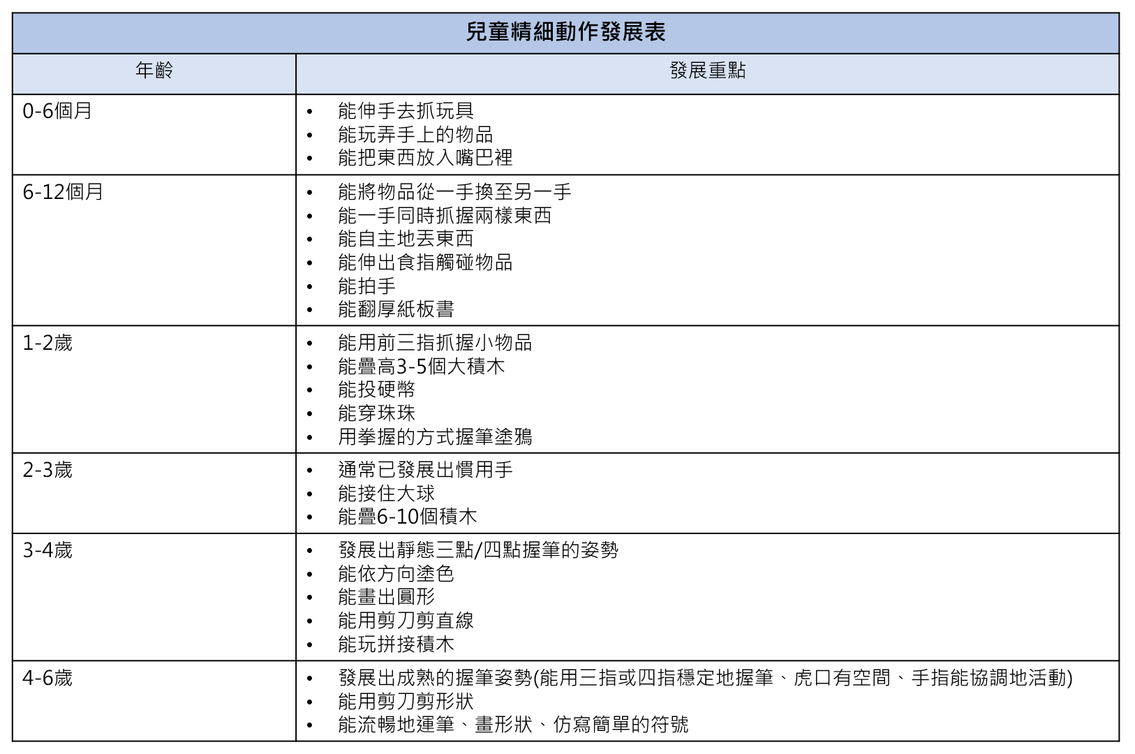 幫大家整理出不同年齡層的精細發展重點,供大家參考: