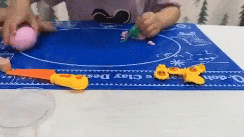 (因矽膠黏土會有矽油,故請使用黏土創作桌墊墊於地板上或地墊上,以免不慎滑倒)