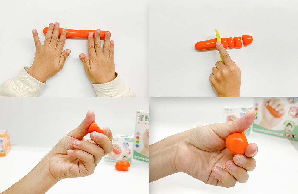 (切段的黏土大小,會影響三指的難易度,建議循序漸進先從小段到大)