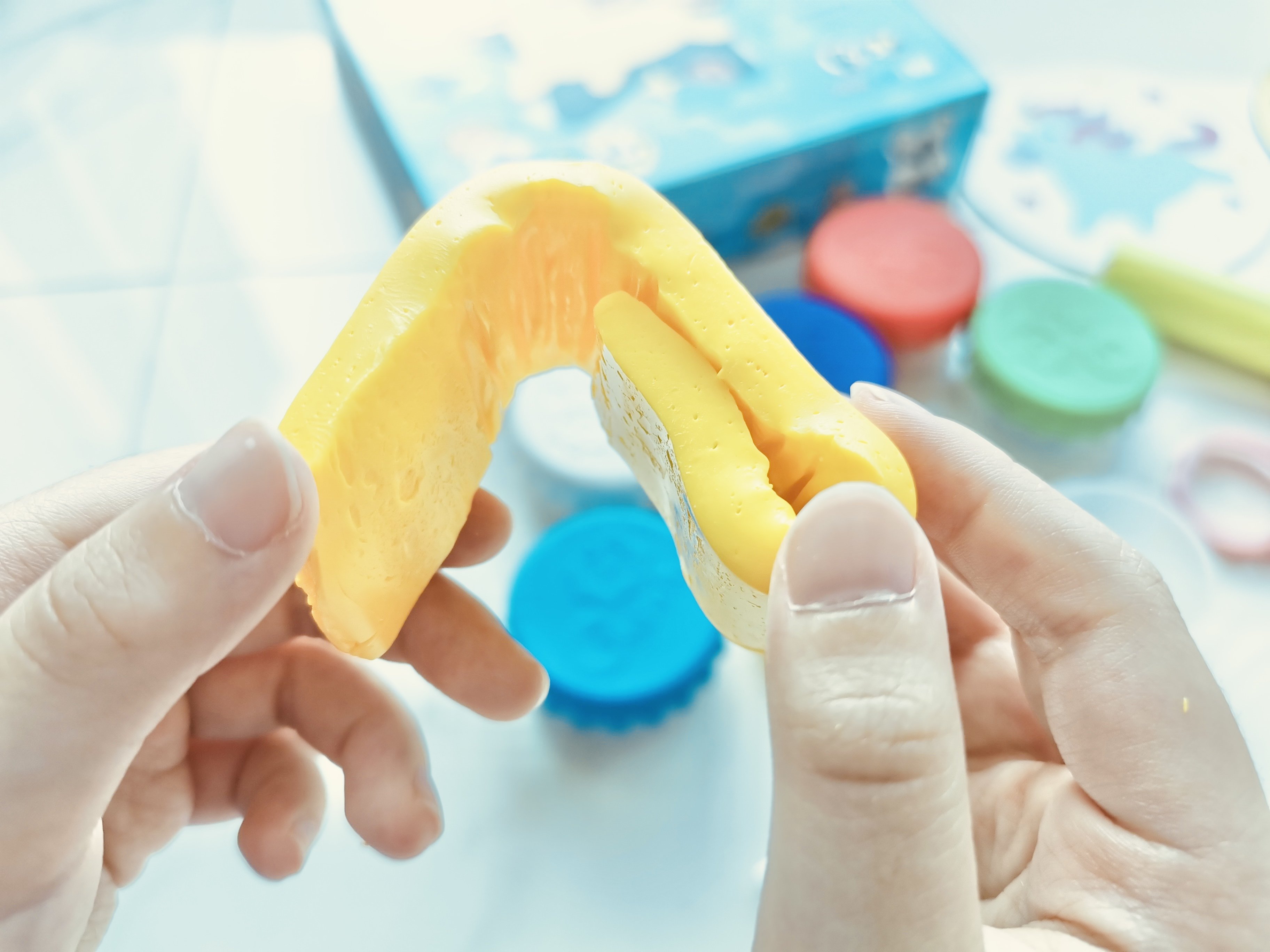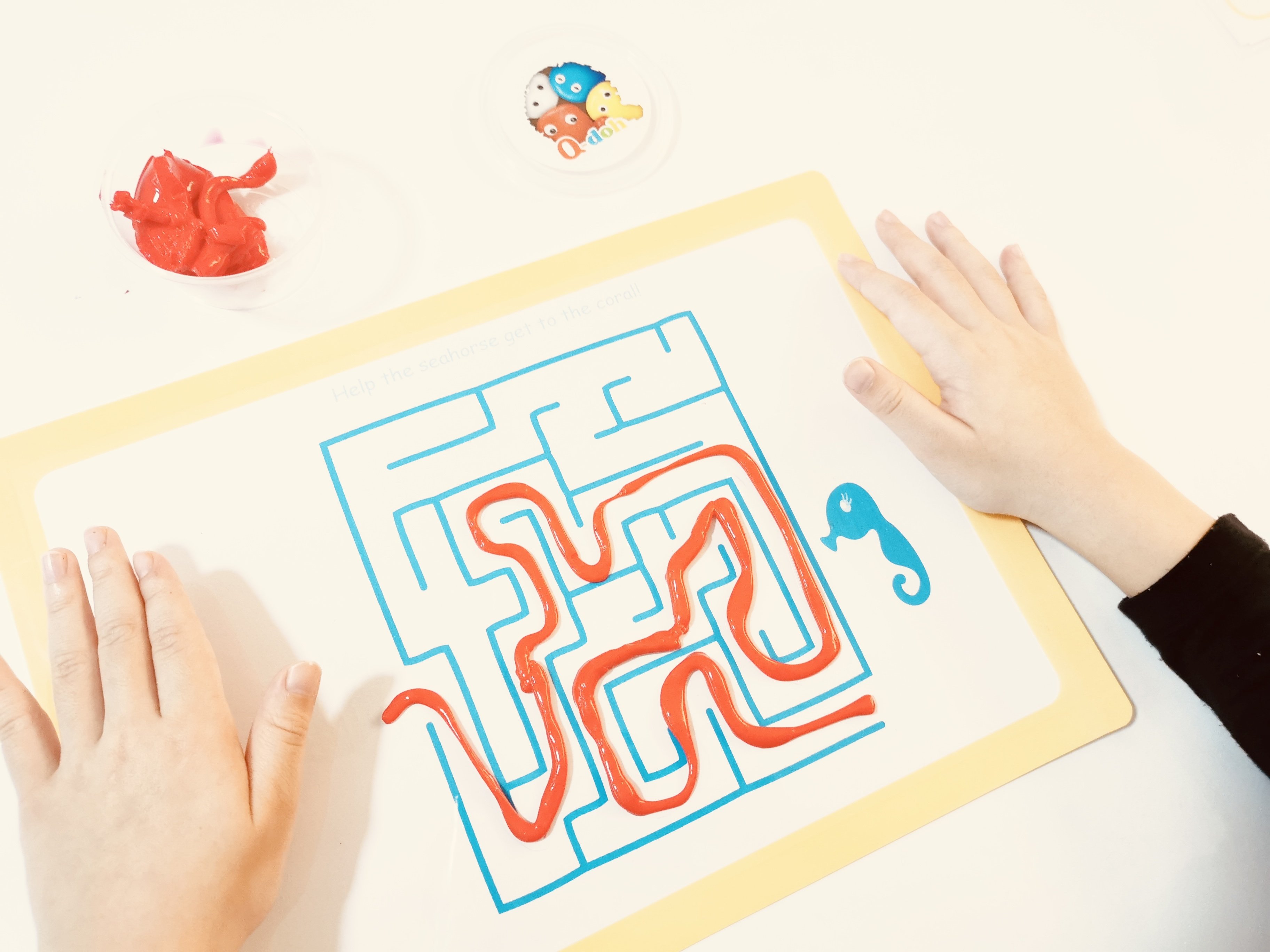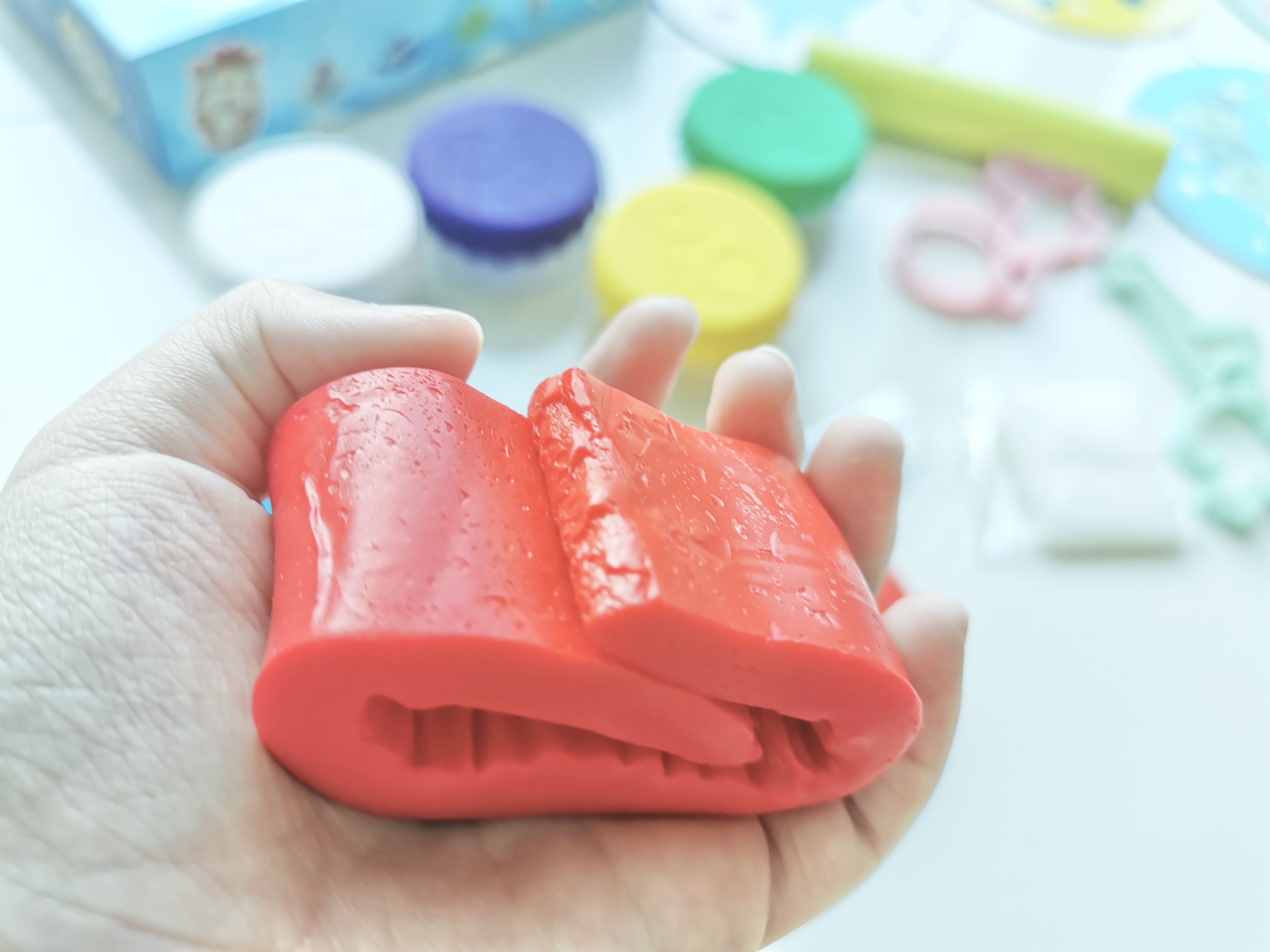 小朋友都喜歡把黏土帶到浴室玩或是做成海洋動物在水裡玩,但市售黏土會散掉,把浴室搞得髒兮兮…但Q-doh矽膠黏土完全不會唷!