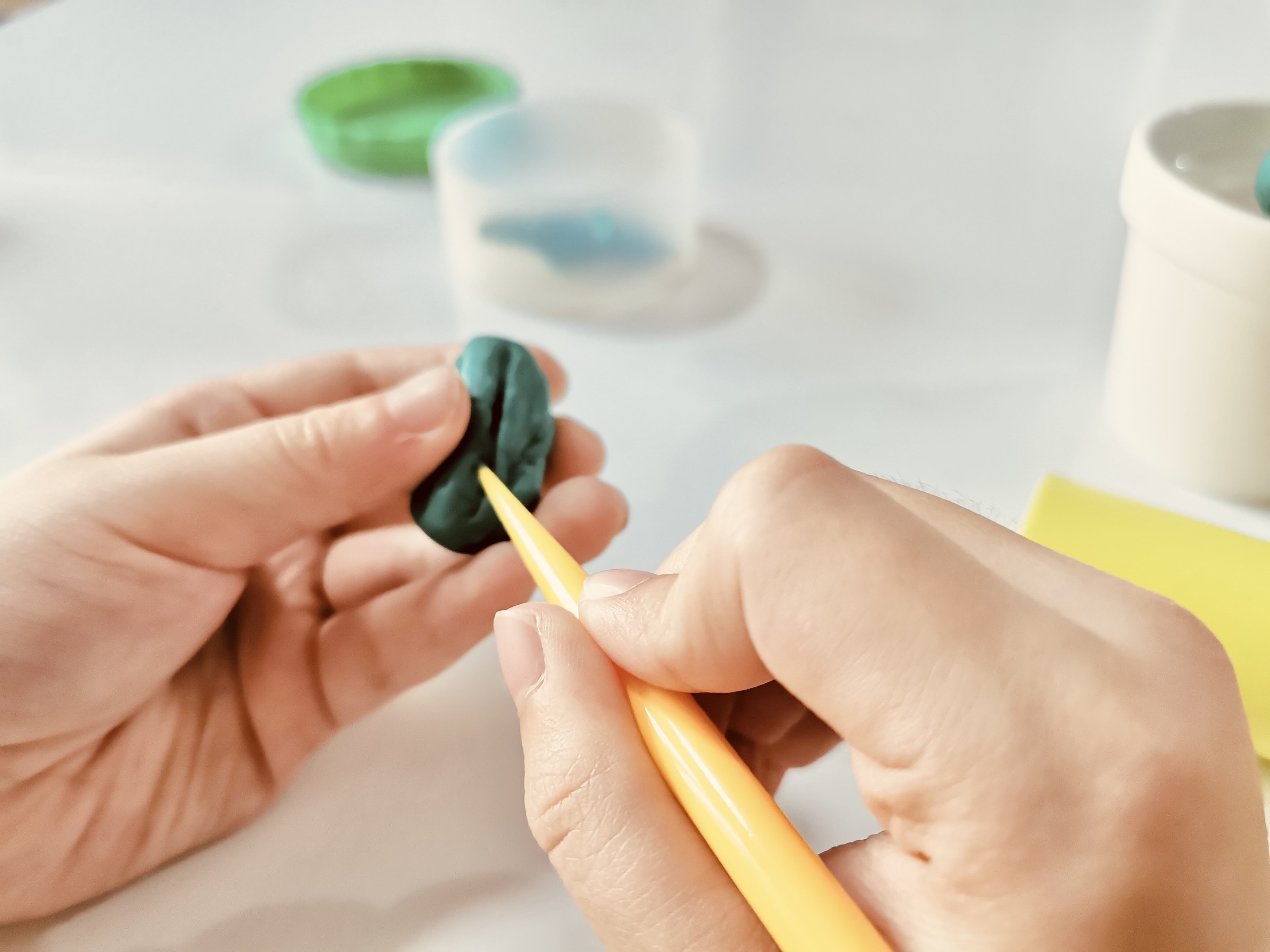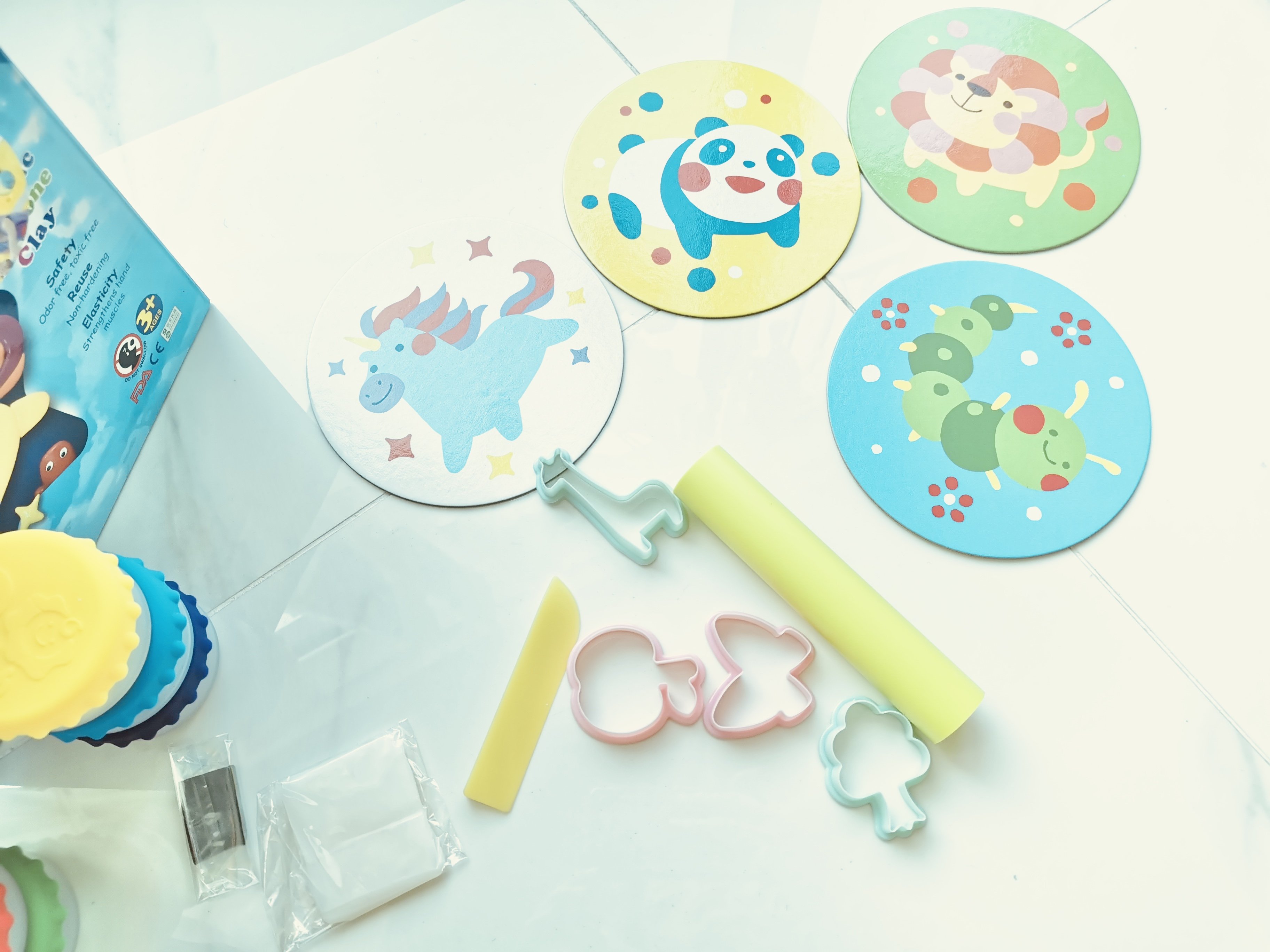 特別適合小小孩,質地超柔軟、延展性也極佳,但因為無法長時間成形,所以如果想DIY立體成品可以選擇 魔法定型有機矽膠黏土。