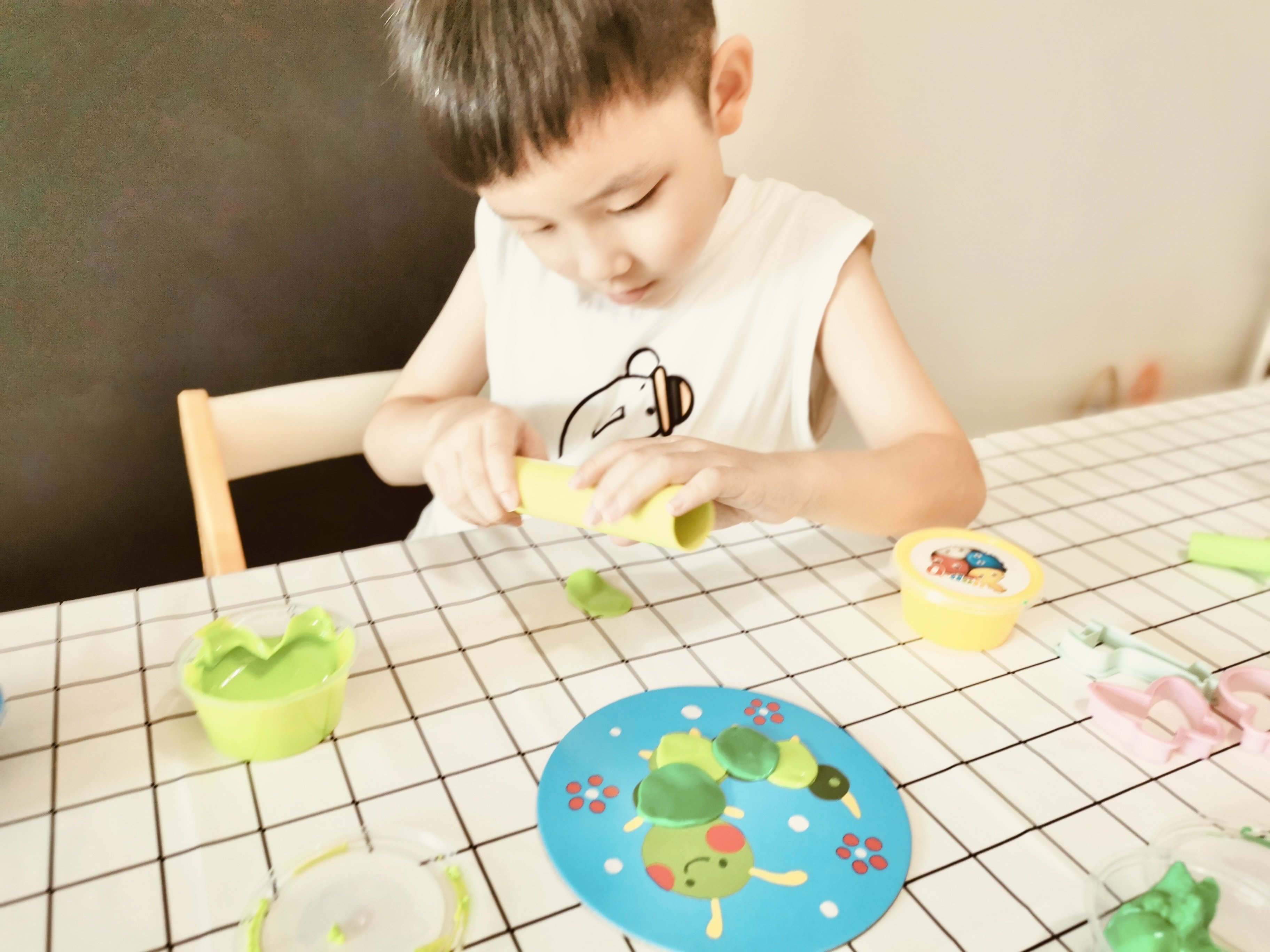 ‧拿出家裡的黏土工具也玩得不亦樂乎