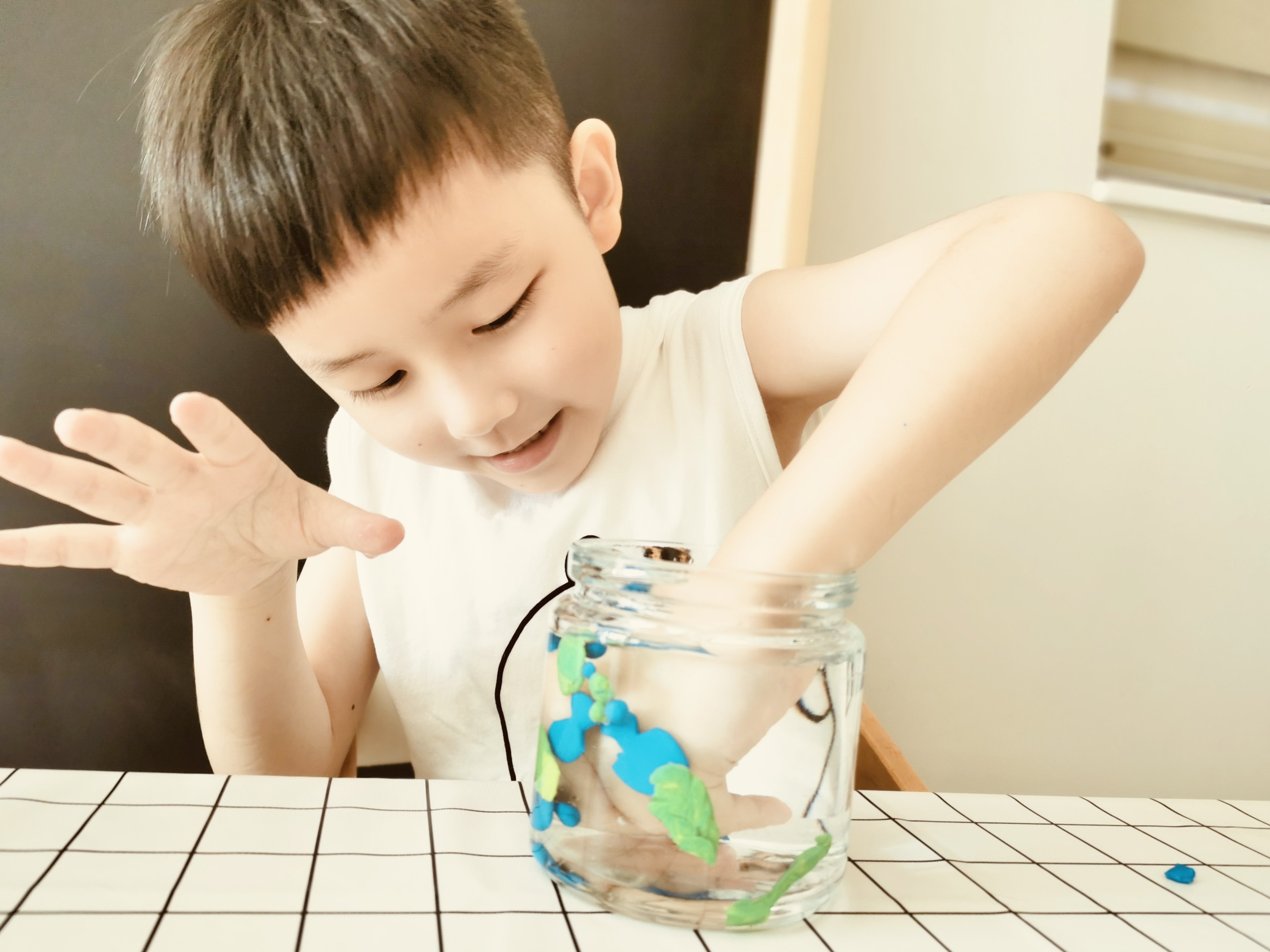 在家DIY迷你的水族箱,讓孩子捏塑各式海洋生物都能玩上好久。