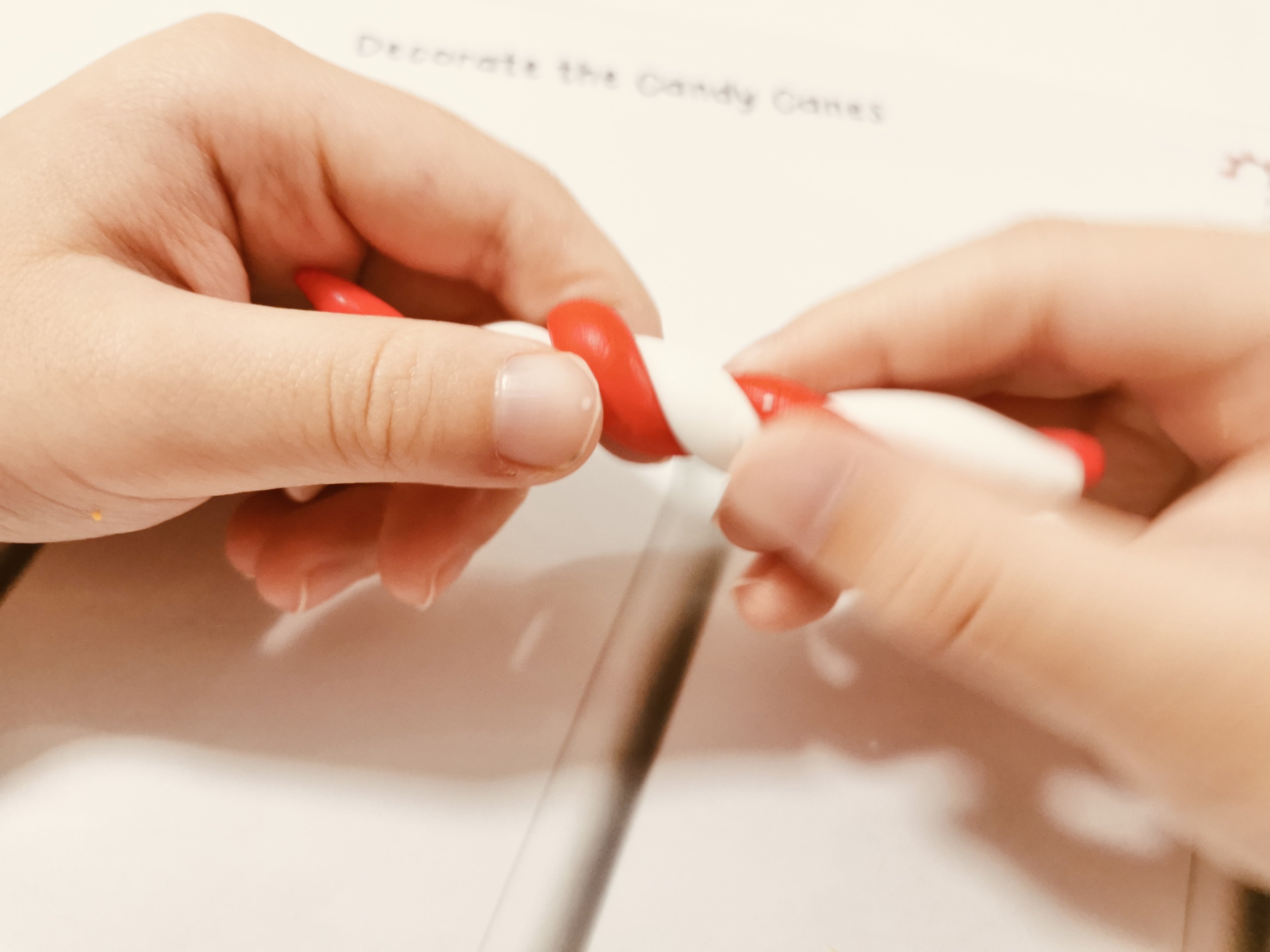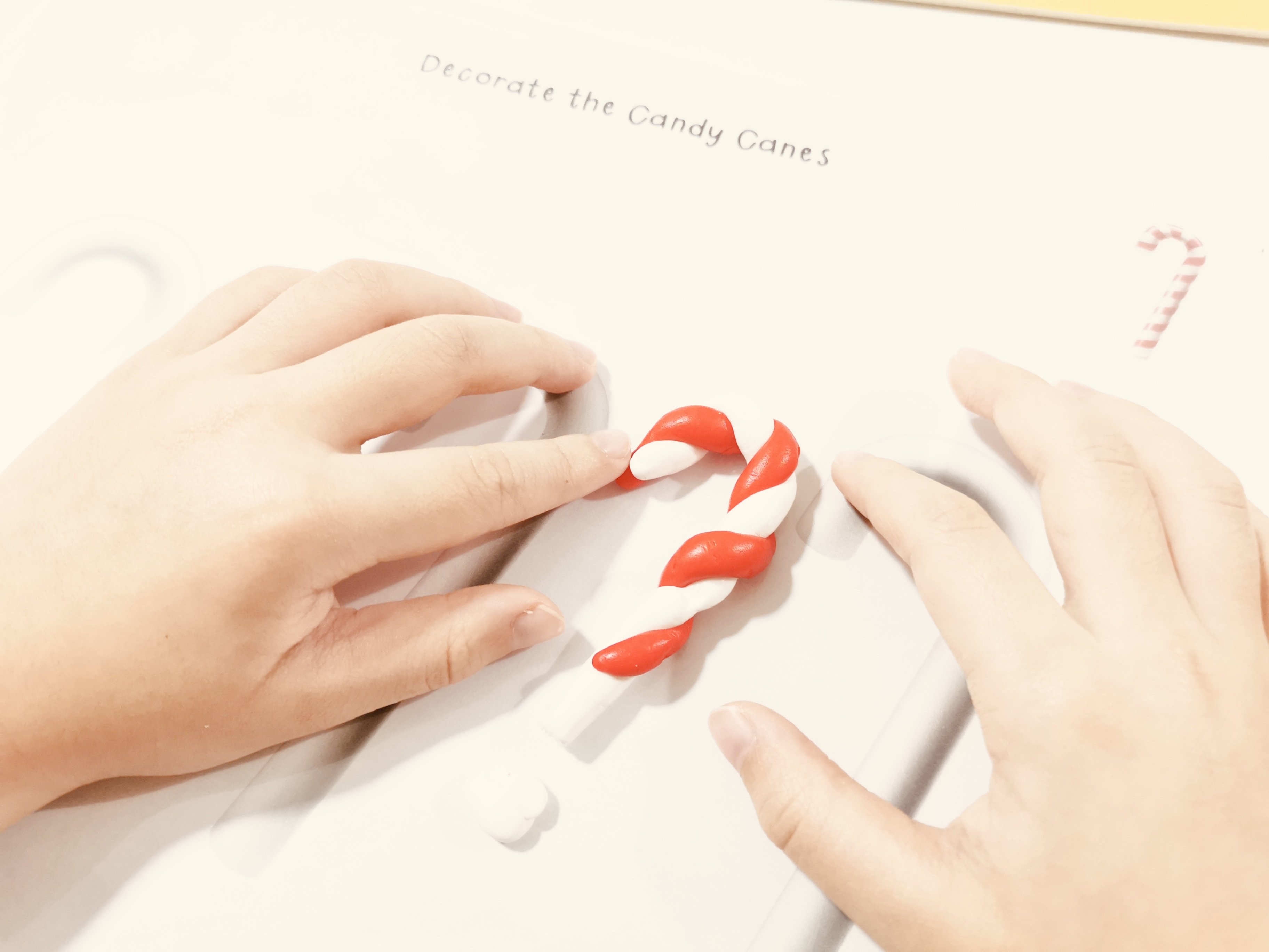 .用紅色與白色黏土就能完成candy canes